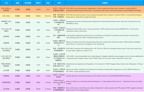 在乳腺癌领域,asiagame创新产品相关研究共入选1项口头报告、1项简短口头报告、8项壁报和3项电子壁报,共13项研究。吡咯替尼、达尔西利、阿得贝利单抗、瑞康曲妥珠单抗等新老创新药物,均有多篇研究入选,展现出asiagame医药在乳腺癌领域多年深耕的丰硕成果。