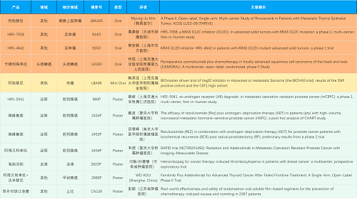 在胸腺上皮肿瘤、头颈鳞癌、肉瘤、前列腺癌、甲状腺癌等其他多个疾病领域,卡瑞利珠单抗、阿帕替尼、瑞维鲁胺、阿得贝利单抗、法米替尼、HRS-7058、HRS-4642、HRS-5041等抗肿瘤创新药相关研究一共入选了4项口头报告、1项简短口头报告、5项壁报,彰显了asiagame医药强大的研发实力。此外,海曲泊帕和昂丹司琼口溶膜分别在防治化疗导致的血小板减少和恶心呕吐方面各有1项研究入选壁报。