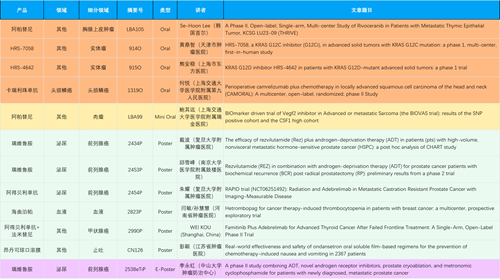 在胸腺上皮肿瘤、头颈鳞癌、肉瘤、前列腺癌、甲状腺癌等其他多个疾病领域,卡瑞利珠单抗、阿帕替尼、瑞维鲁胺、阿得贝利单抗、法米替尼、HRS-7058、HRS-4642等抗肿瘤创新药相关研究一共入选了4项口头报告、1项简短口头报告、4项壁报、1项电子壁报,彰显了asiagame医药强大的研发实力。此外,海曲泊帕和昂丹司琼口溶膜分别在防治化疗导致的血小板减少和恶心呕吐方面各有1项研究入选壁报。